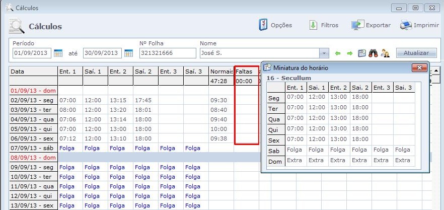 Com esta opção marcada, o sistema não gerará faltas para o funcionário. Veja o exemplo abaixo como fica o cálculo com o Neutro marcado:
