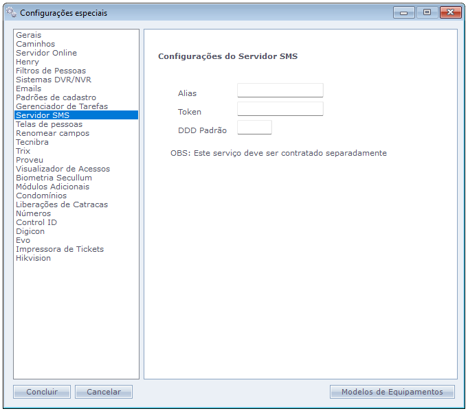 No Servidor SMS o cliente terá que ter uma empresa que lhe preste serviço de pacotes de mensagens. Em caso de dúvidas sobre esta, sugerimos que contate nosso setor Comercial para mais informações.