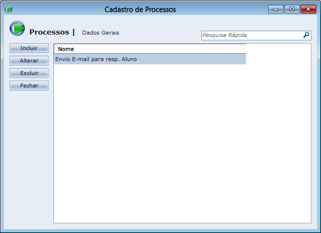 Informe uma descrição amigável, de fácil identificação do processo a ser cadastrado. Em nosso exemplo utilizaremos "Envio SMS / E-mail Aluno";