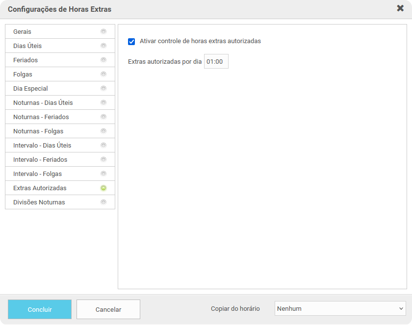 O recurso de Extras Autorizadas, permite que sejam filtradas as horas extras que o funcionário está permitido ou não de realizar, registrando as não autorizadas em outra coluna que possa ser autorizada manualmente.