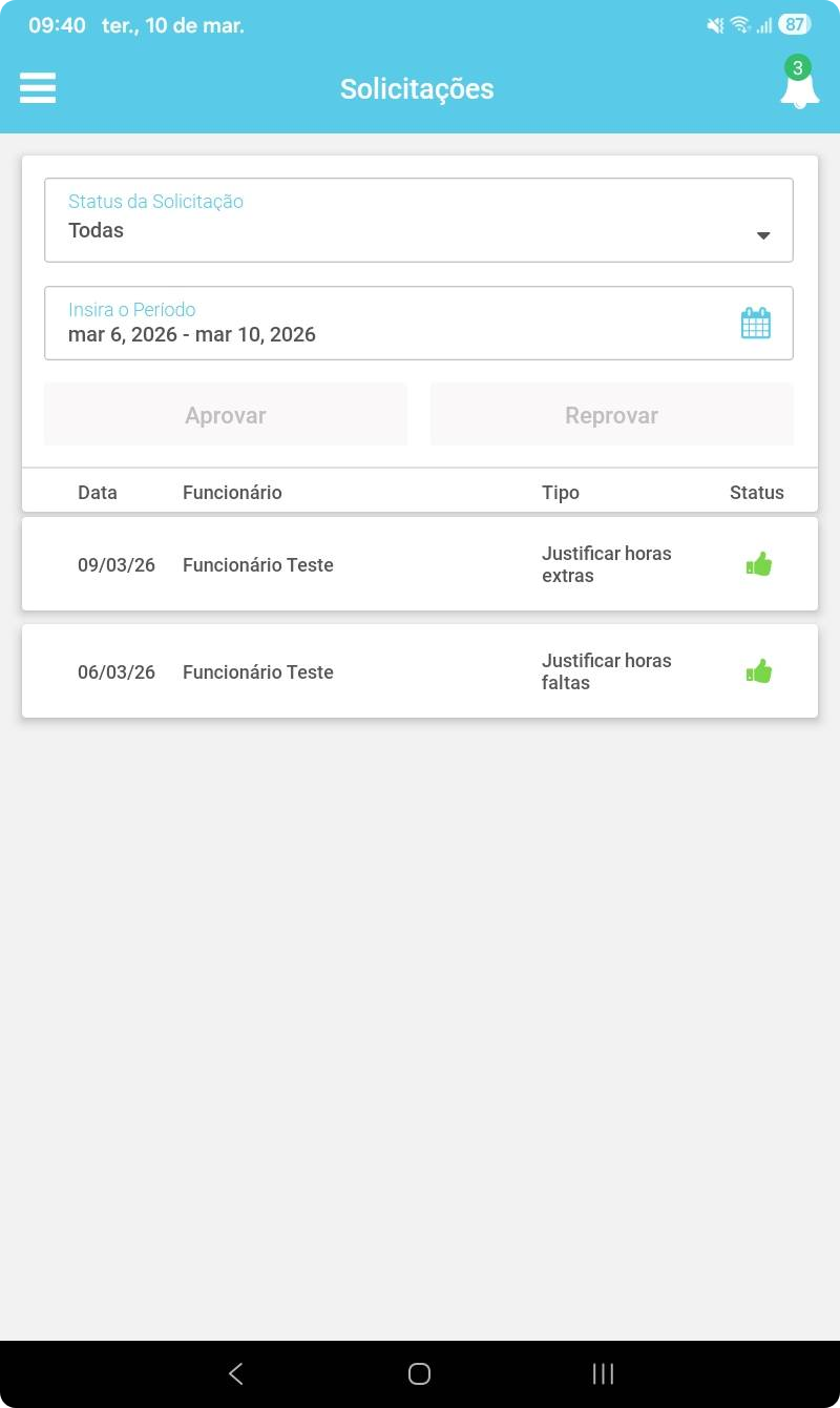Solicitações no Ponto Web e app Central do Funcionário do Gerente: