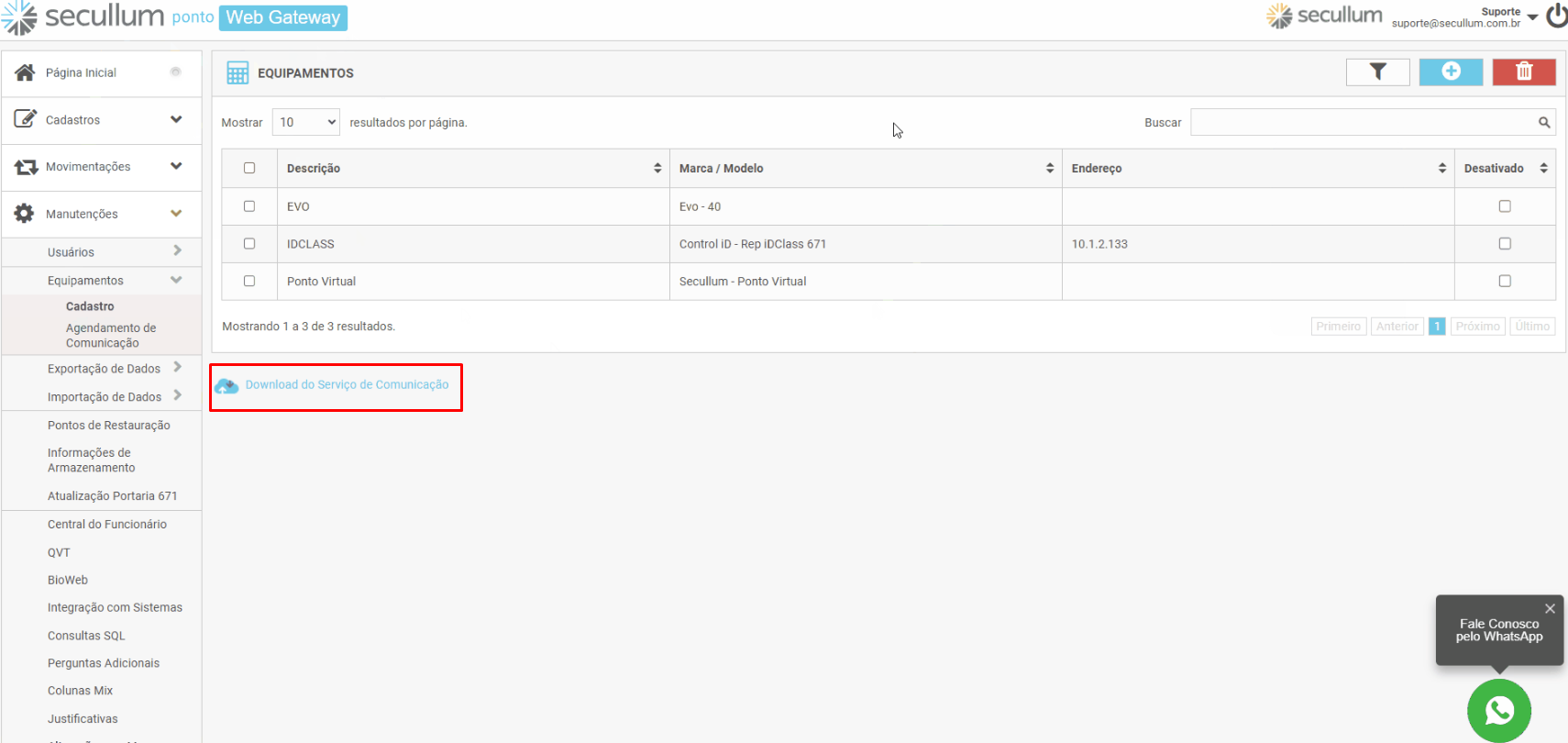 Com a descontinuação do Secullum Gateway, a comunicação com equipamentos passou a ser realizada através do Ponto Web (Plano Gateway).
