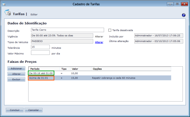 - Acima de 01:01 será "Somado ao valor da faixa anterior" o valor de R$ 15,00**;