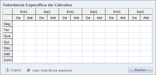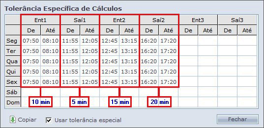 Para habilitar esta opção, entre no Horários - Tipo - Tolerância Específica - Selecione Usar tolerância especial: