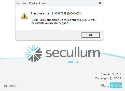 O que fazer quando aparecer a mensagem "SQL Server Inexistente ou Acesso Negado" ao entrar nos sistemas desktop da Secullum?