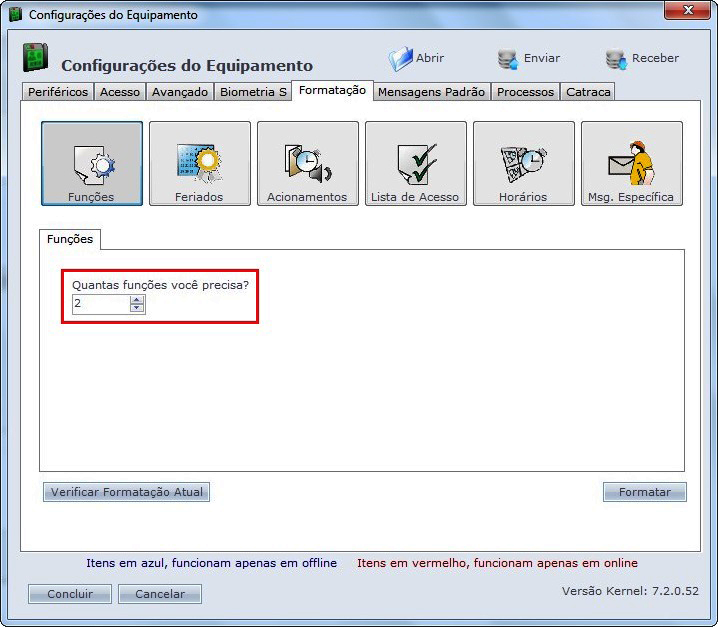 6. Clique em Funções e configure para X funções, conforme o exemplo deste manual. Pode-se configurar para até 100 funções atualmente.