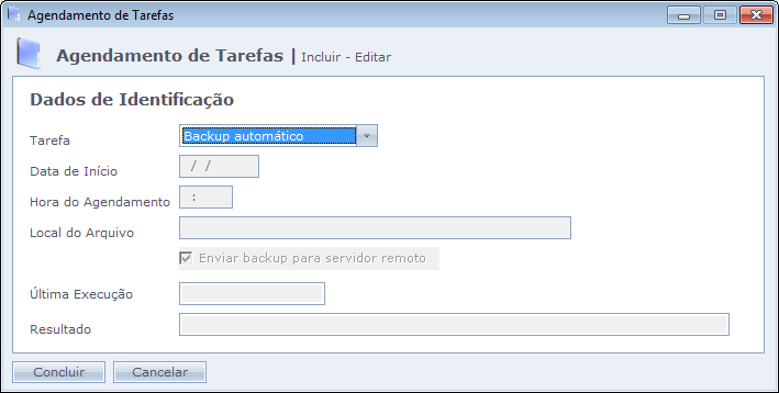 • Tarefa: Informe a frequência com que será executada a tarefa, podendo ser: Diariamente, Semanalmente ou Mensalmente;