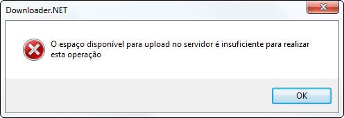 • Não enviar o novo arquivo e me avisar sobre o problema: Será exibido aviso ao usuário informando que o espaço contratado é insuficiente para salvar o novo arquivo.