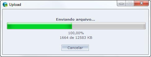 • Enviar um arquivo para o servidor: Clicando no ícone , o administrador do sistema poderá incluir backups manualmente para a nuvem. Selecionando o backup, será mostrado a tela de envio, conforme imagem de exemplo abaixo: