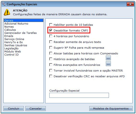 É possível desabilitar o uso do CNPJ no cadastro de empresas. Para isso, abra Manutenção - Configurações Especiais e marque a opção Desabilitar formato CNPJ.