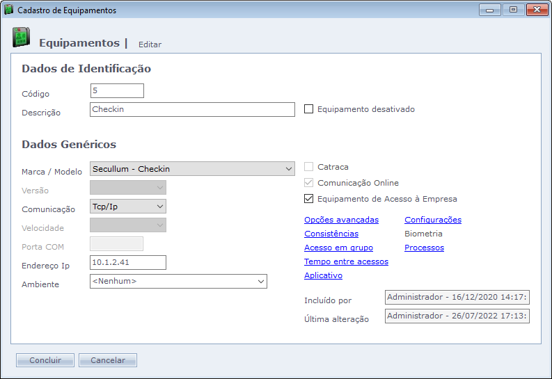 - Código: Código do equipamento que será solicitado depois, nas configurações do Checkin;
