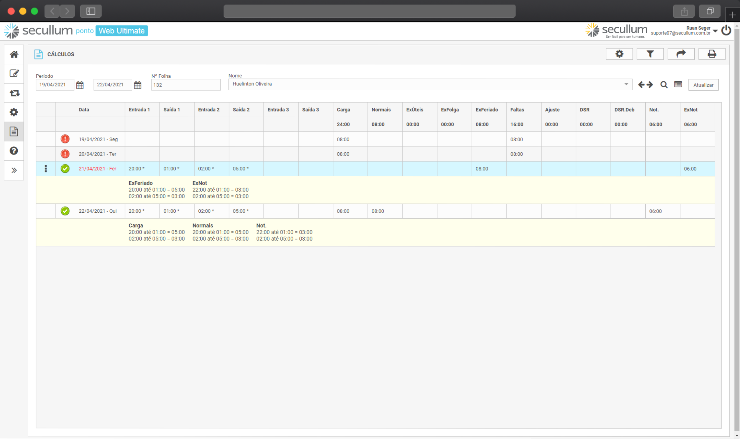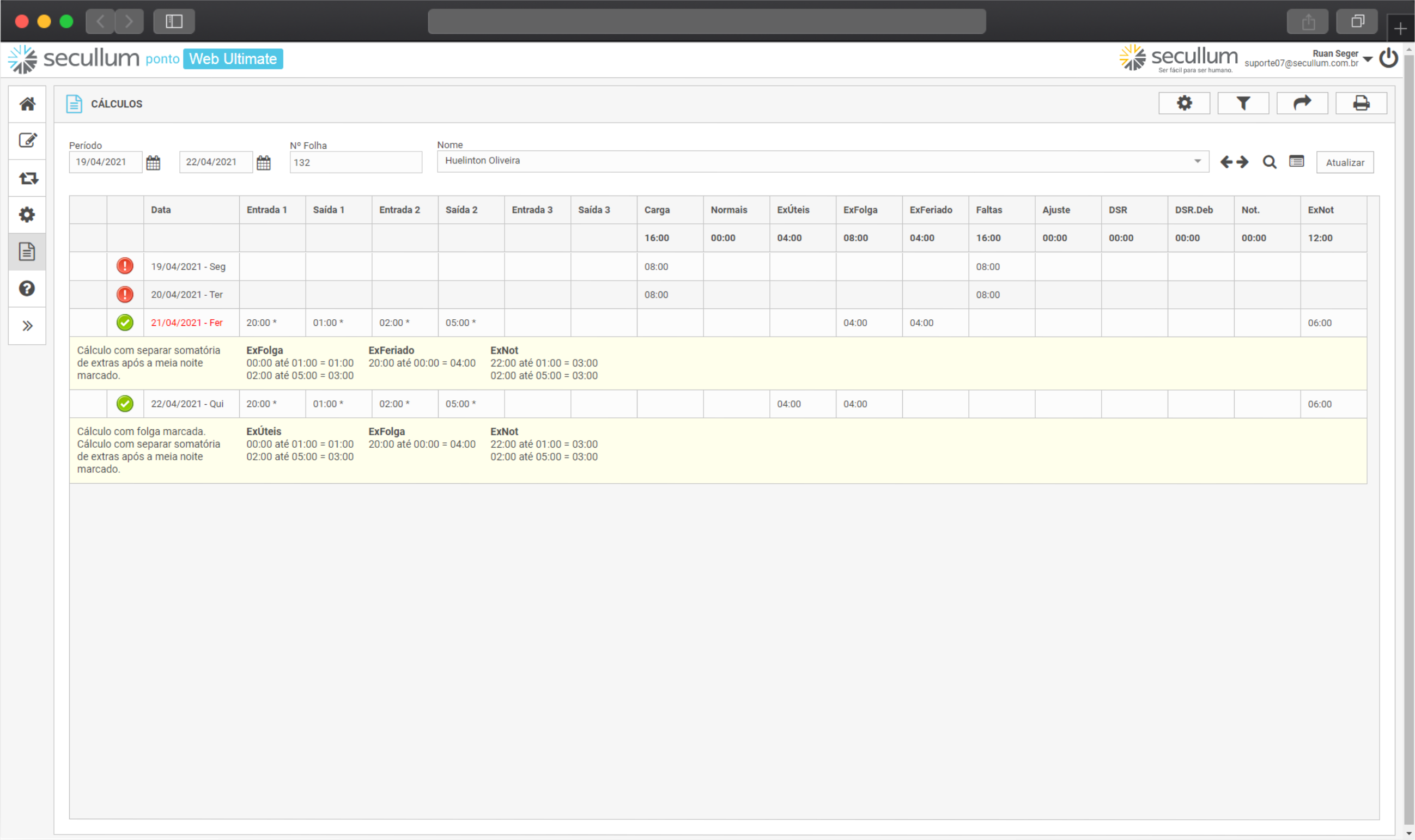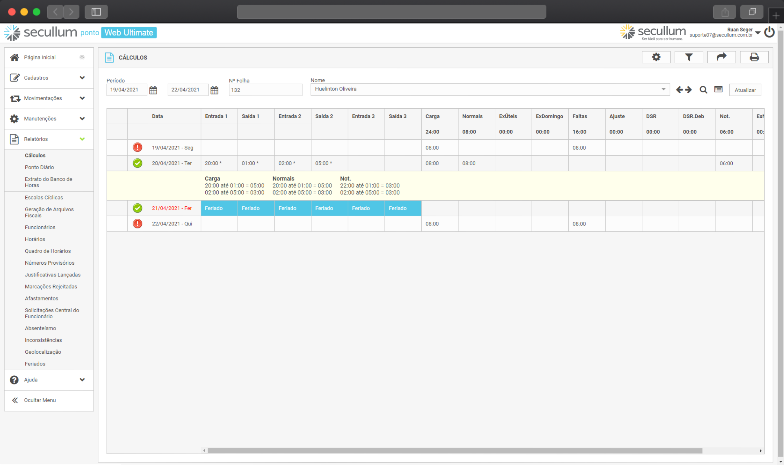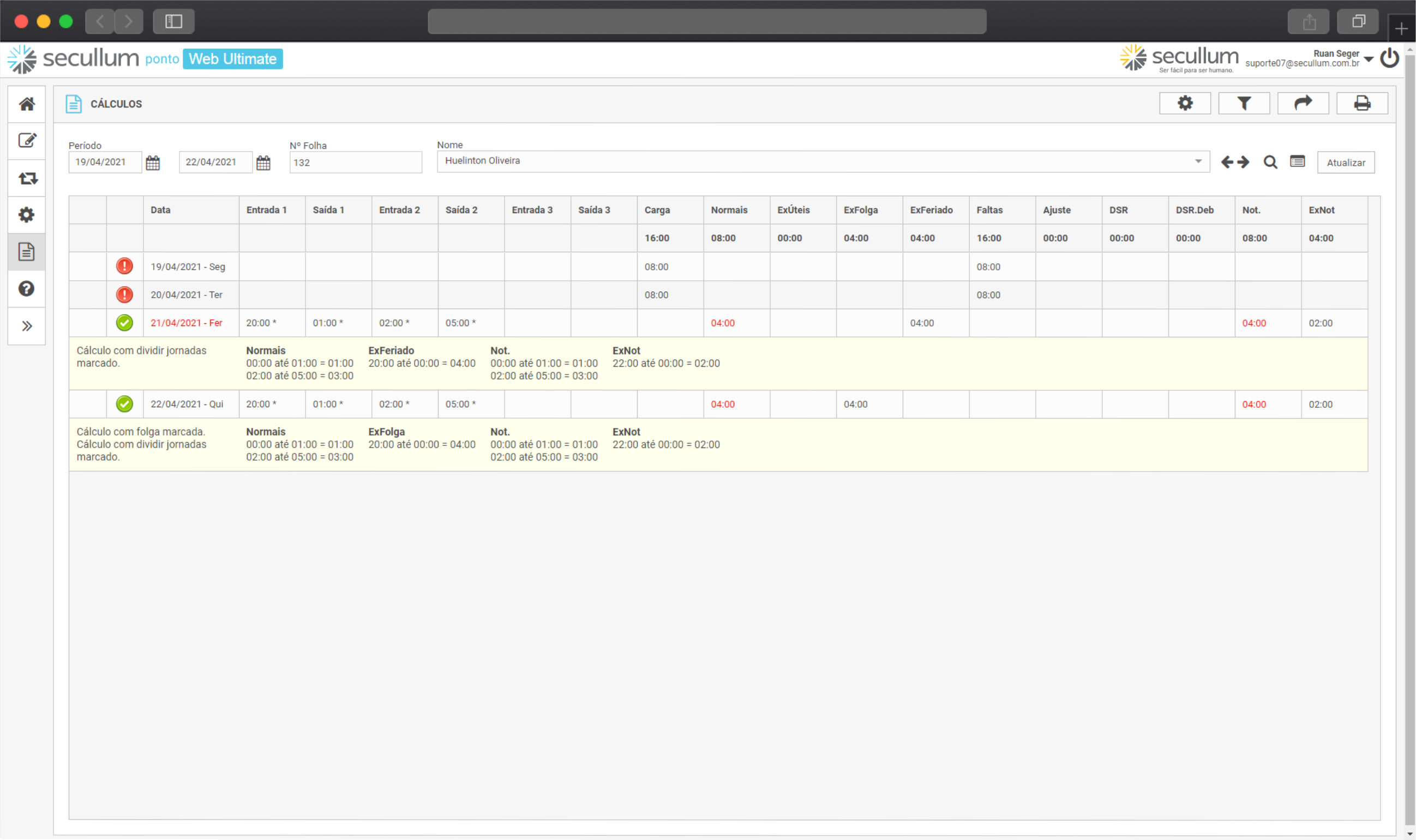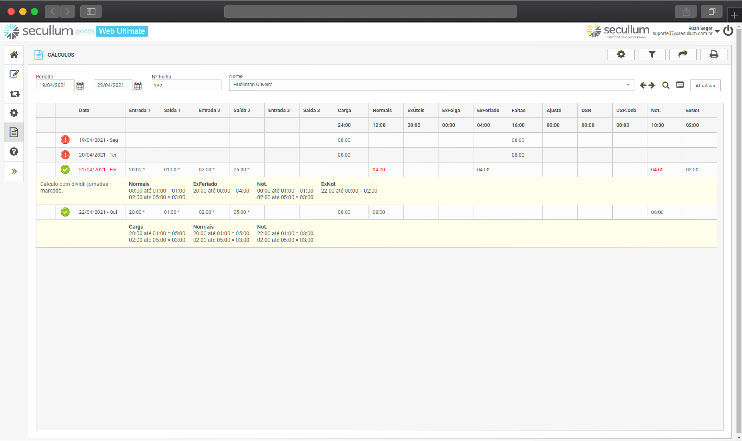Divisões Noturnas em Feriados e Folgas no Secullum Ponto Web