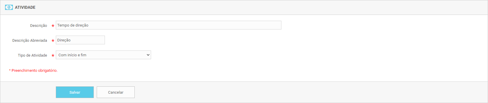 - Descrição Abreviada: Configure um nome abreviado da atividade de até 7 caracteres. Ela aparecerá em Cálculos para a visualização dos totais. Essa descrição é obrigatória;