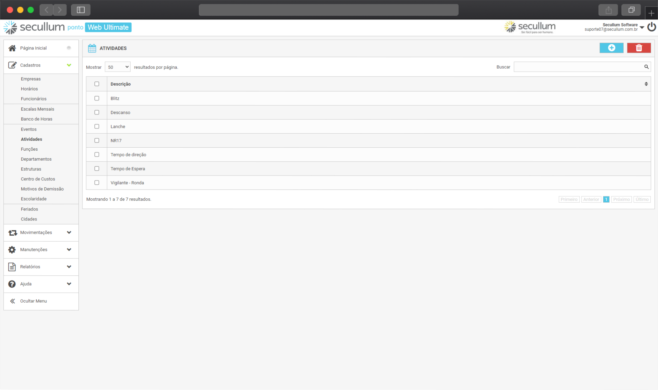 A opção Atividades está disponível na versão Ultimate do Secullum Ponto Web e a partir da versão 1.22.0 do app Central do Funcionário.