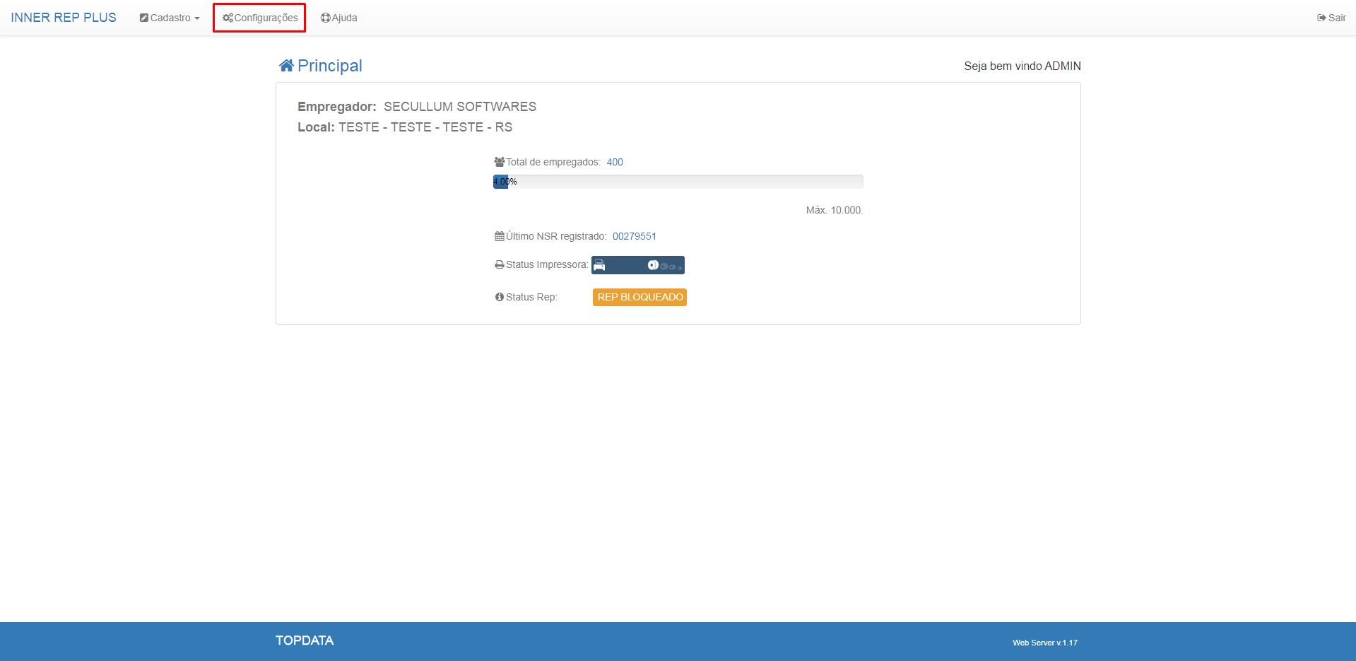 Após a configuração, clique no ícone para enviar as configurações para o REP, em seguida clique em