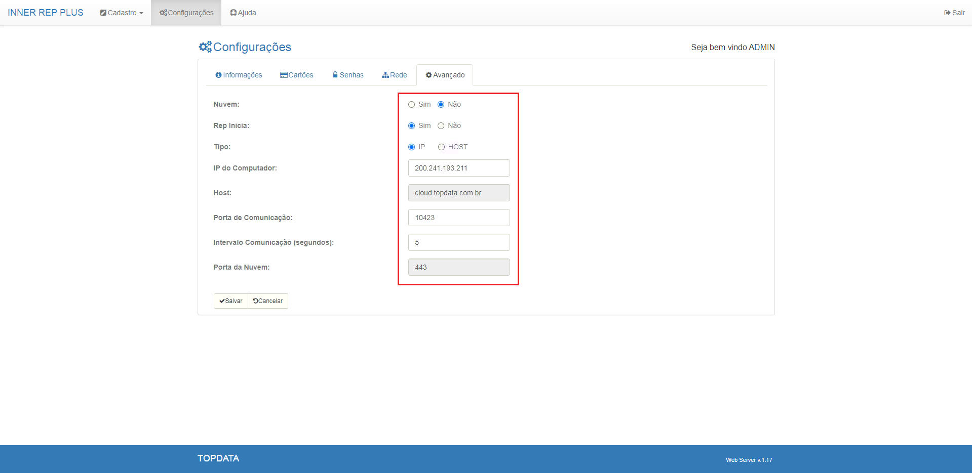 Nessa PF mostraremos como configurar um Inner Rep Plus da Topdata em Modo Cliente, essa configuração deve ser realizada para clientes que possuem o Secullum Comunicador Servidor, onde o REP irá comunicar de uma rede externa diretamente no Agente de Comunicação nos servidores da Secullum.