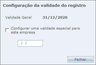 Campo que pode ser configurado uma validade especial para esta empresa, neste caso, podemos ter diversas empresas no Secullum Ponto Offline com diferentes validades no sistema.
