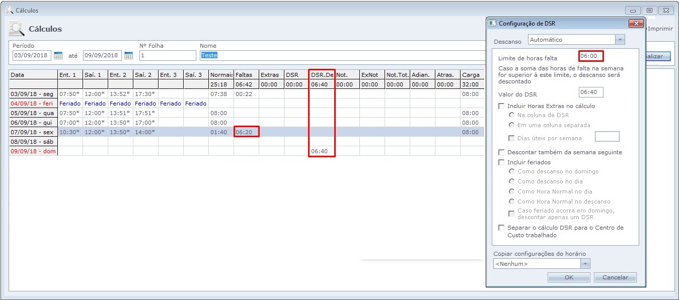 • Indicar os dias de DSR em cálculos: