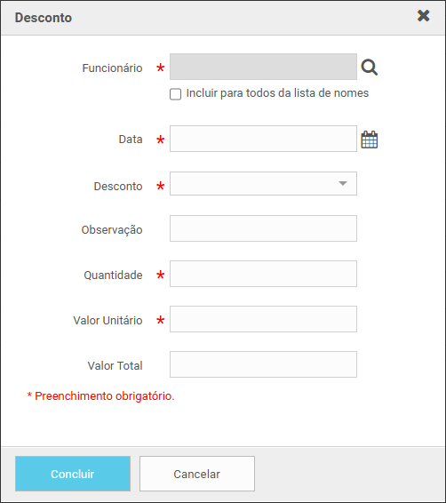 - Quantidade: Quantidade de descontos que serão lançados para o funcionário;