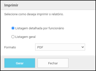 Clicando no ícone , podemos escolher dois tipos de relatório de descontos Podendo ser impresso detalhado por funcionário ou uma listagem geral: