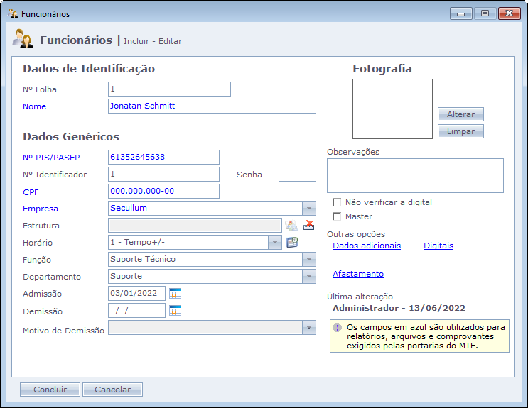 - Tornar o campo CPF obrigatório e deixando o mesmo para cadastro em Dados de Identificação dentro do sistema. Para saber mais sobre essa obrigatoriedade, clique aqui;