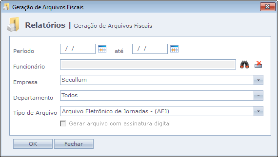 - Em Relatórios - Geração de Arquivos Fiscais, criar novo layout AEJ, conforme o Anexo VI da Portaria 671;