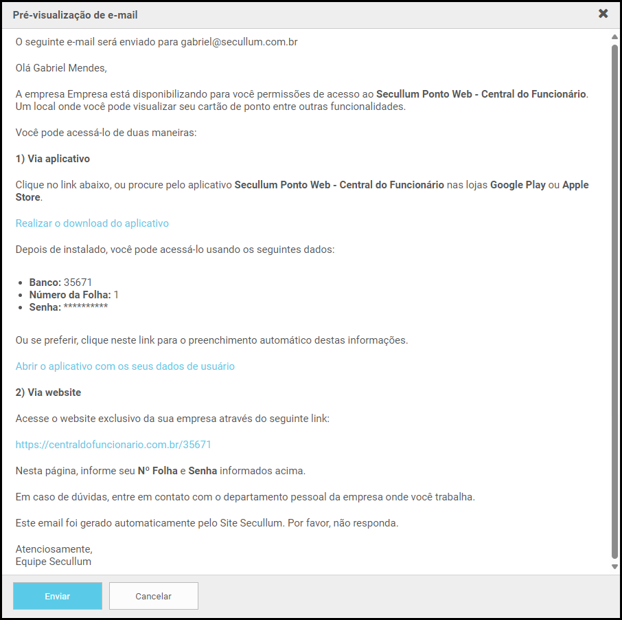 3.1. Lembre-se de configurar o e-mail dos funcionários na aba Dados Cadastrais em seus cadastros;