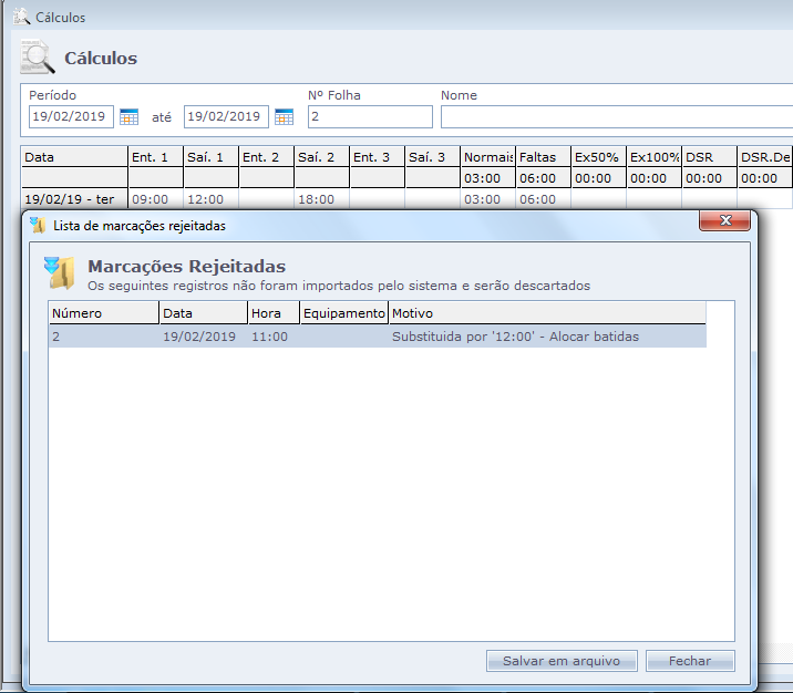 Obs: : Esta opção não serve para batidas incluídas manualmente no sistema e também não funciona se estiver marcado o Compensado na tela de Horários para o horário do funcionário.