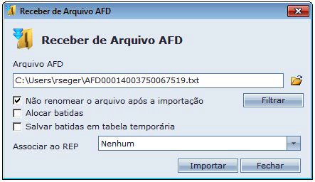 Nesta tela, temos um campo para que seja preenchido o caminho onde está salvo o AFD. Você pode localizar o arquivo pelo Browser do Windows clicando sobre a pasta amarela localizada ao lado direito do campo.
