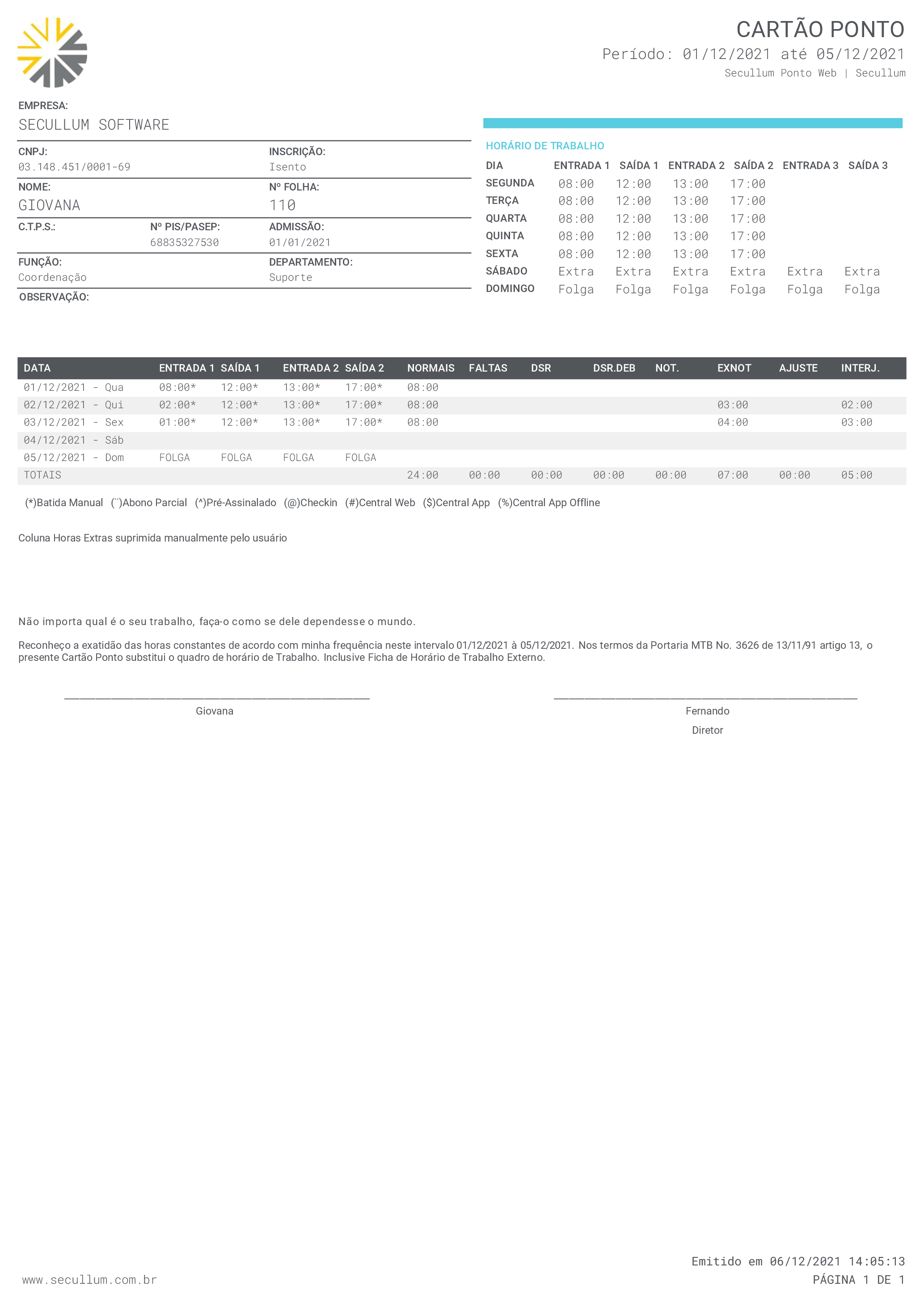 Software: Secullum Ponto Web