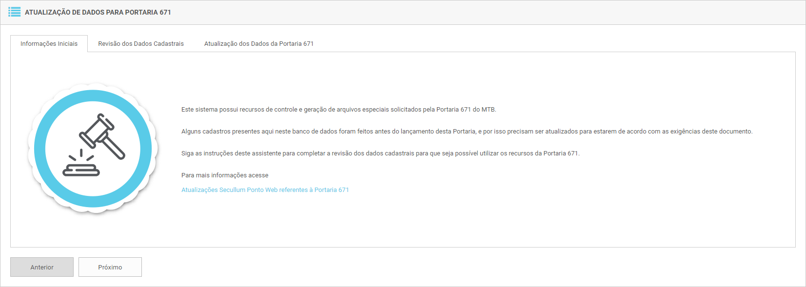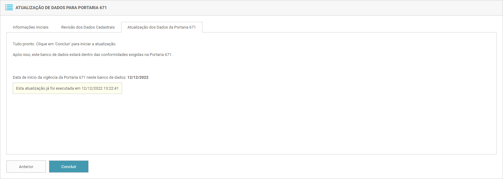Se todos os dados estiverem corretos, o usuário poderá iniciar a atualização e assim liberar as funcionalidades da Portaria 671.