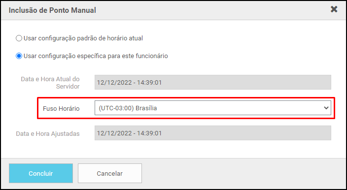 Campos Ajuste de Horário trocados para Fuso Horário