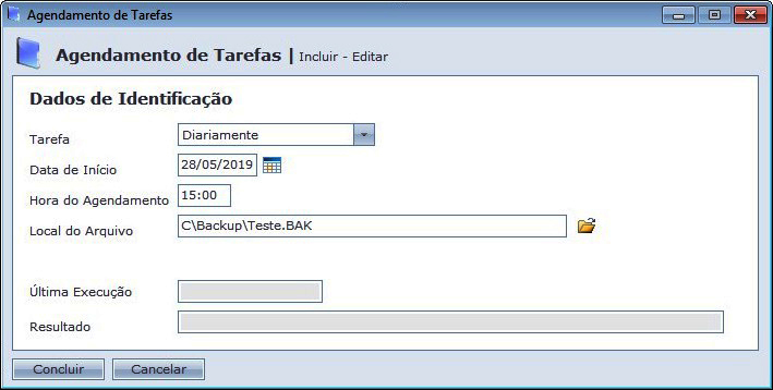 Para que o backup agendado funcione corretamente, é necessário que o Gerenciador de Tarefas do software esteja em execução.