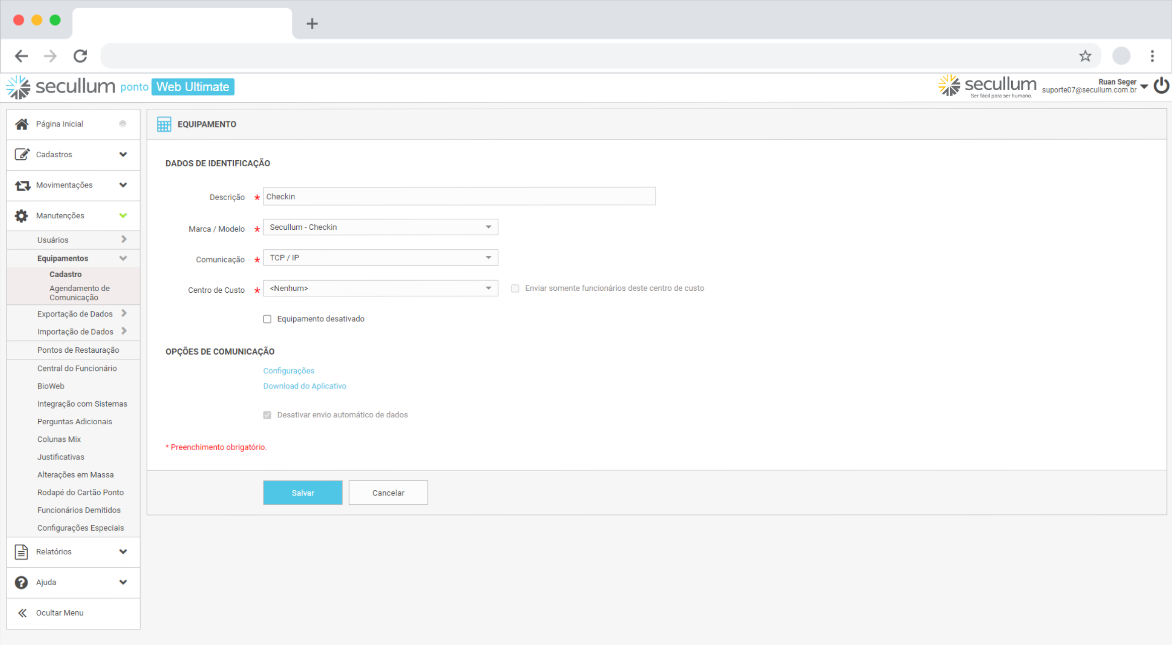 - Centro de Custo: Opção para que o equipamento receba apenas marcações de um centro de custo específico;