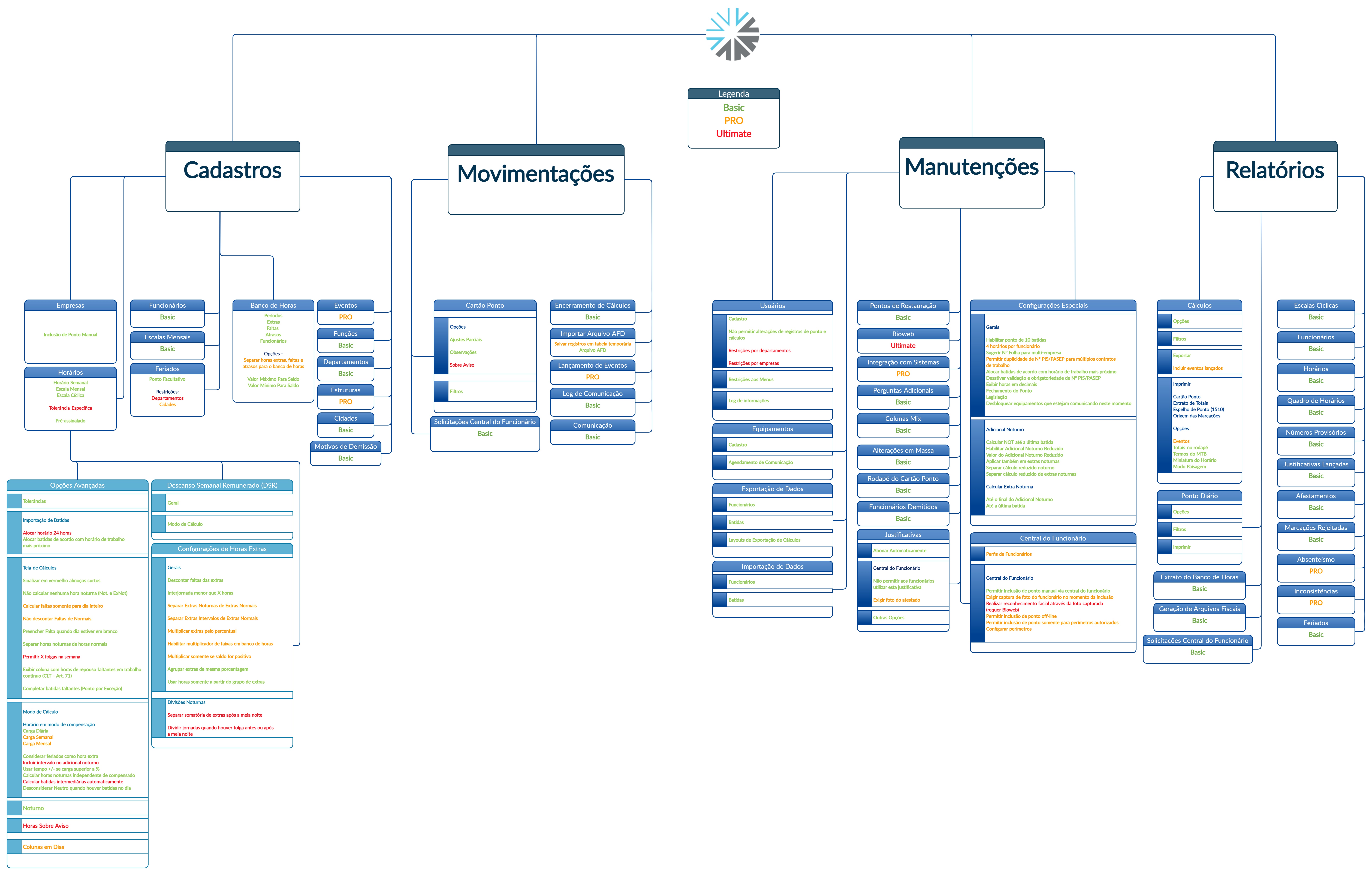 Segue abaixo um organograma desse sistema, mostrando todas as suas funcionalidades e planos: