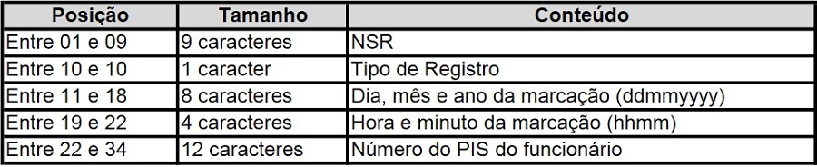 Abaixo uma tabela onde é possível verificar cada campo do AFD.