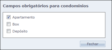 Nessa tela, podemos renomear os campos pré-configurados: Apartamento, Bloco, Box e Depósito, para outros, conforme a necessidade do cliente.