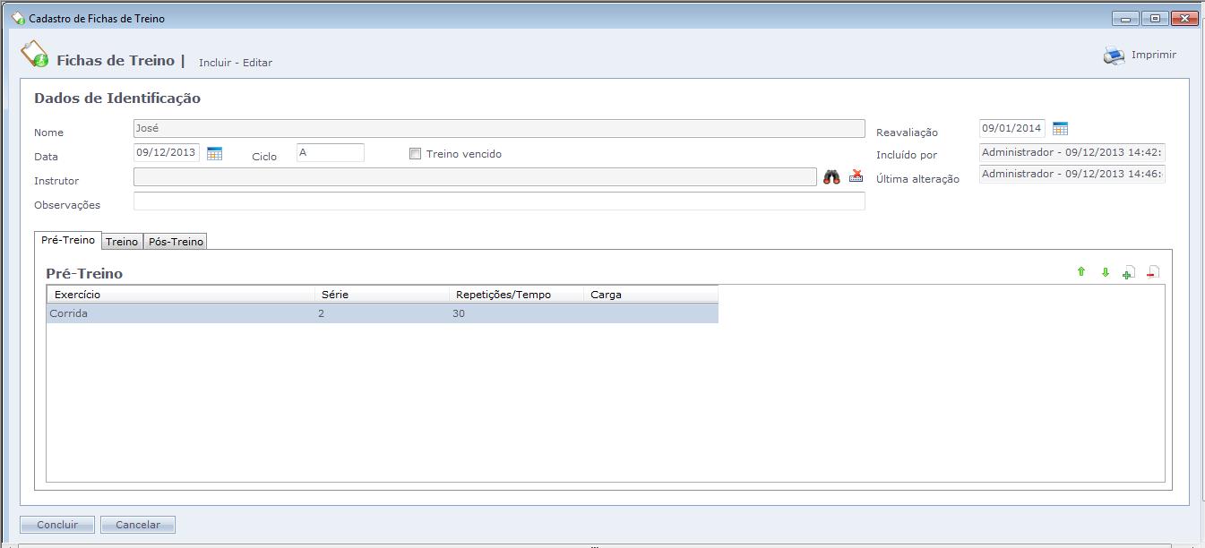 Nesta ficha, pode-se configurar quantos exercícios foram necessários. Após isso, clique no botão Imprimir. Deste modo, será impresso a ficha de treino de determinado aluno.
