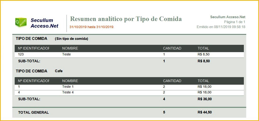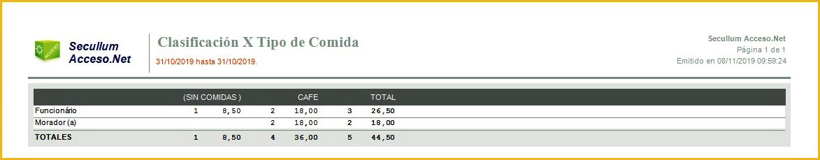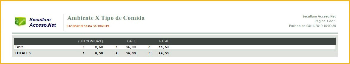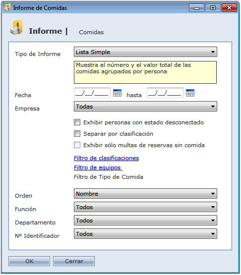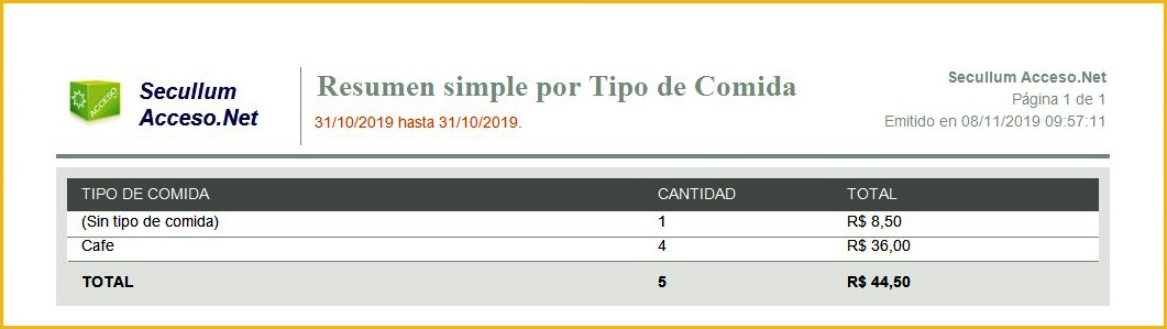 OBS: Esta opción esta disponíble solo para los informes Resumen Simple por Tipo de Comida, Resumen Analítico por Tipo de Comida y Lista con Tipo de Comida.