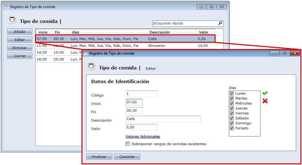 Con esta opción es possible configurar una tabla de comida especifica para cada enpleado, o sea, que tenga valores en las comidas diferentes de los demas empleados.