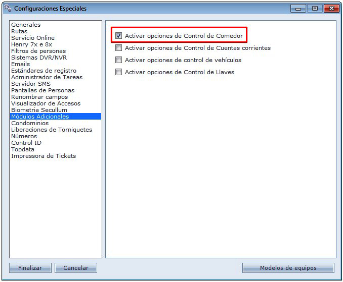 Activando el modulo Comedor del Acceso.Net