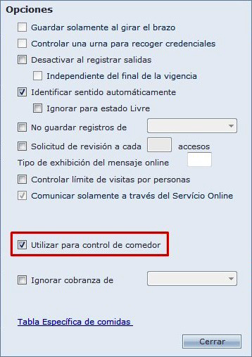 Otras opciónes que habilitan cuando se activa el control de comedor: