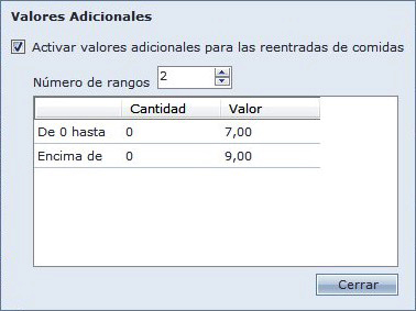 En esta opción es possible cobrar valores por la "Reentrada" en el comedor, cobrando valores adicionales.