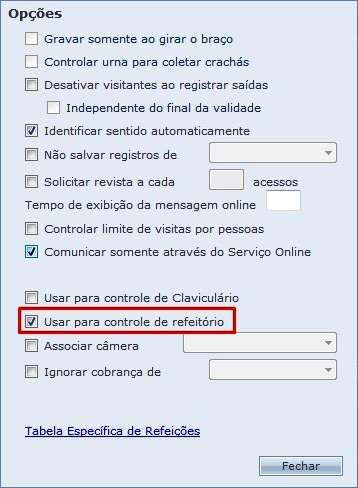 Usar faixas para reservas: Utilizado para configurar faixas de reservas de refeições e liberações de acesso;