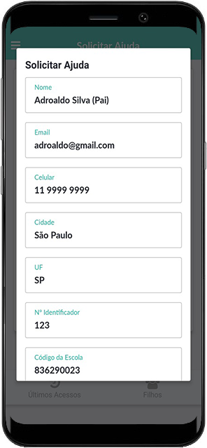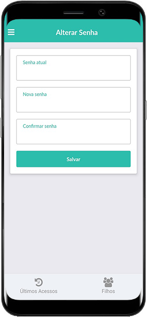 Em alterar senha, pais ou titulares poderão cadastrar uma nova senha para acesso ao aplicativo.
