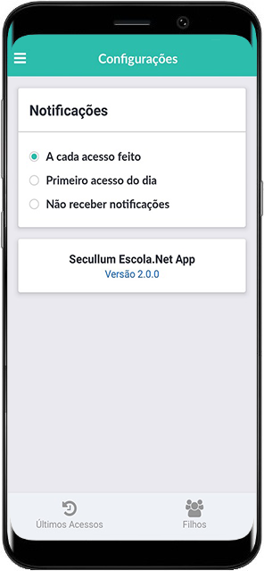 • Primeiro acesso do dia: marcando essa opção, será enviado somente a notificação do primeiro acesso do filho na escola;