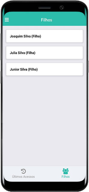 Esta tela nos apresenta no início o Nome do pai ou titular. Logo abaixo temos outras opções: