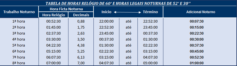 § 1º A hora do trabalho noturno será computada como de 52 minutos e 30 segundos. (Redação dada pelo Decreto-lei nº 9.666, de 1946)