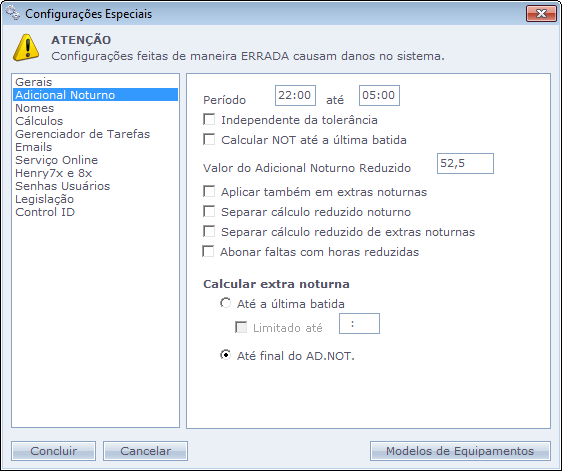 Lembrando que para separar as extras reduzidas, devemos marcar a opção Separar cálculo reduzido de extras noturnas e Aplicar também em extras noturnas em Configurações Especiais - Adicional Noturno.