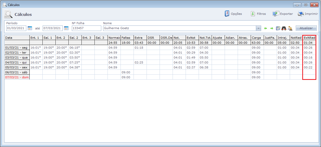 ExNRed = ExNot - Horas Trabalhadas ExNot